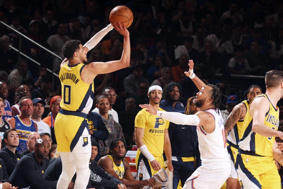 Their 76.3% first half field goal percentage is the fourth best in any half by a team in NBA history. The record holder is the 2023 Pacers against Miami (78.9%). For perspective, there are been 281,944 halves in NBA history, and in the biggest game of all of these Pacers players’ careers, they scored the 4th highest half.